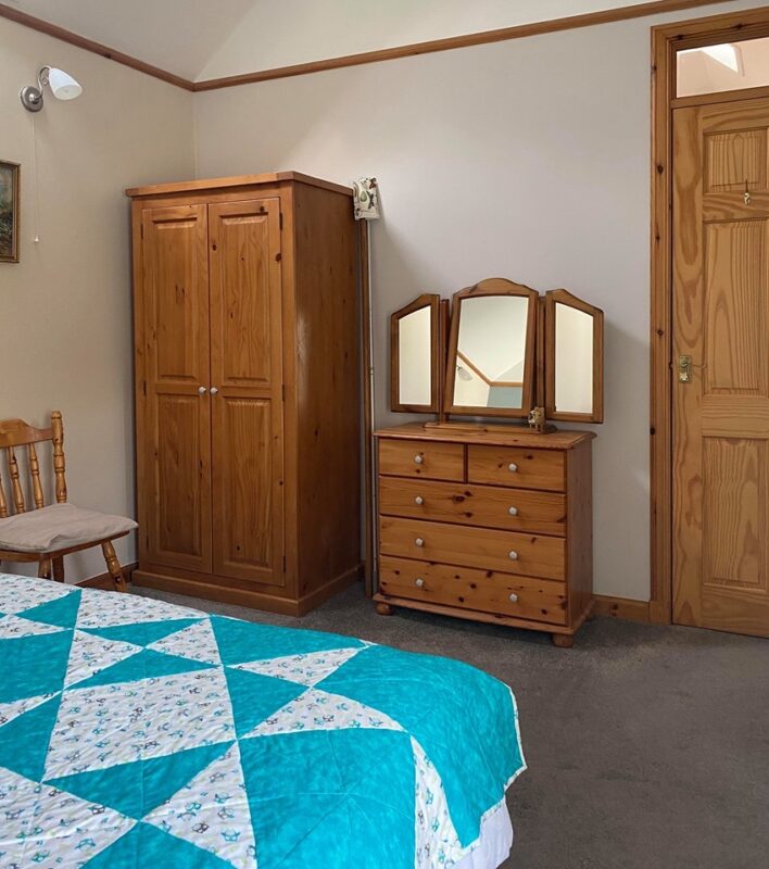 The cosy sitting room is equipped with a comfortable sofa, TV, and a sofa bed to accommodate two additional guests if needed. The double bedroom is furnished to a high standard with a comfortable bed, ensuring a restful night’s sleep. For families with young children, a travel cot is available on request. The property is heated throughout, making it ideal for year-round stays. Outside, there is a garden area where you can relax and soak up the stunning rural views.